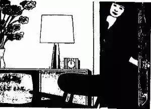 5.图中的女子正在打开房门,她打算做什么?(情景解释:一个女子刚打开房门,还没进房,探出半个身子。房间里有一支插花,一只闹钟,一把椅子,还有一面可能是镜子。)