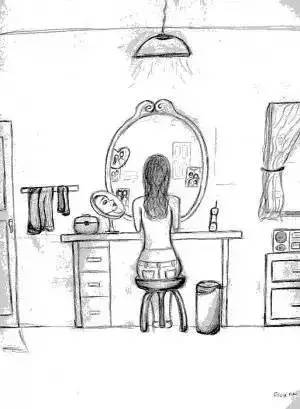 7.图中这个女子化妆是为什么?(情景解释:图中有位女子坐有镜前化妆,但看不到她的正面。)